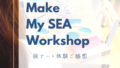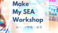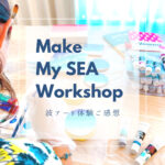 濃いめのブルーの海にホワイトのロゴが映えて、